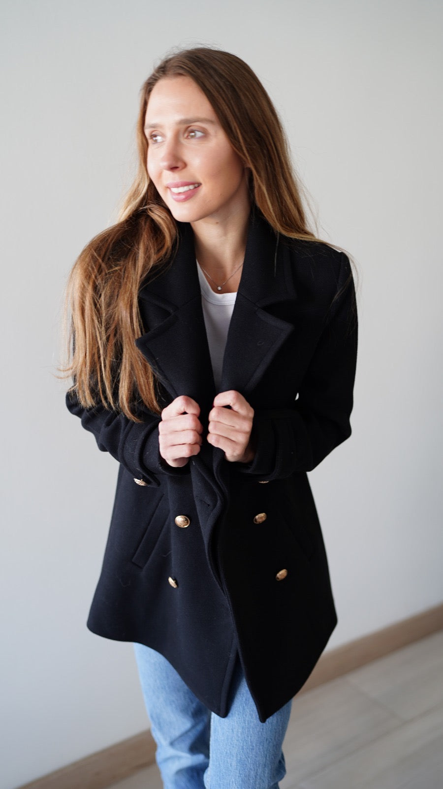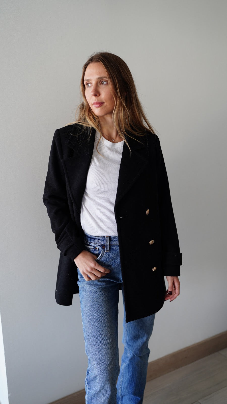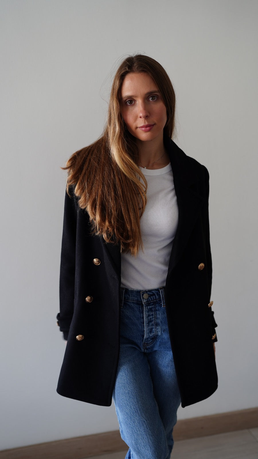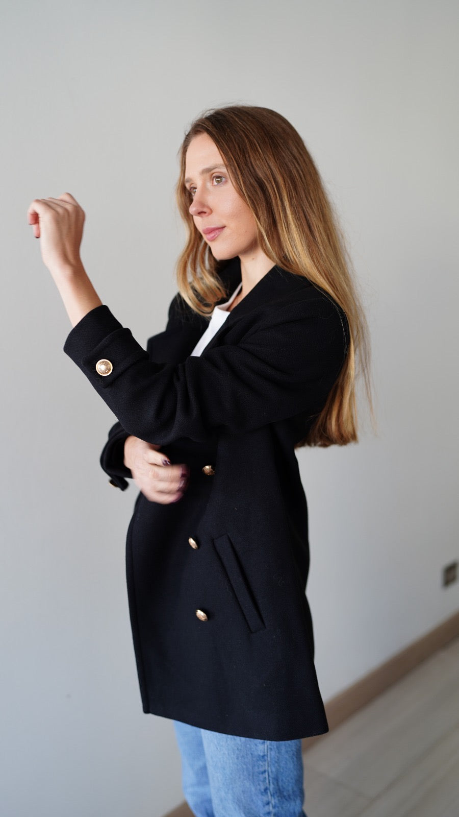 Confeccionado en una mezcla de lana suave y abrigadora, incorpora botones frontales color dorado y un diseño limpio que lo hace ideal para elevar cualquier look.