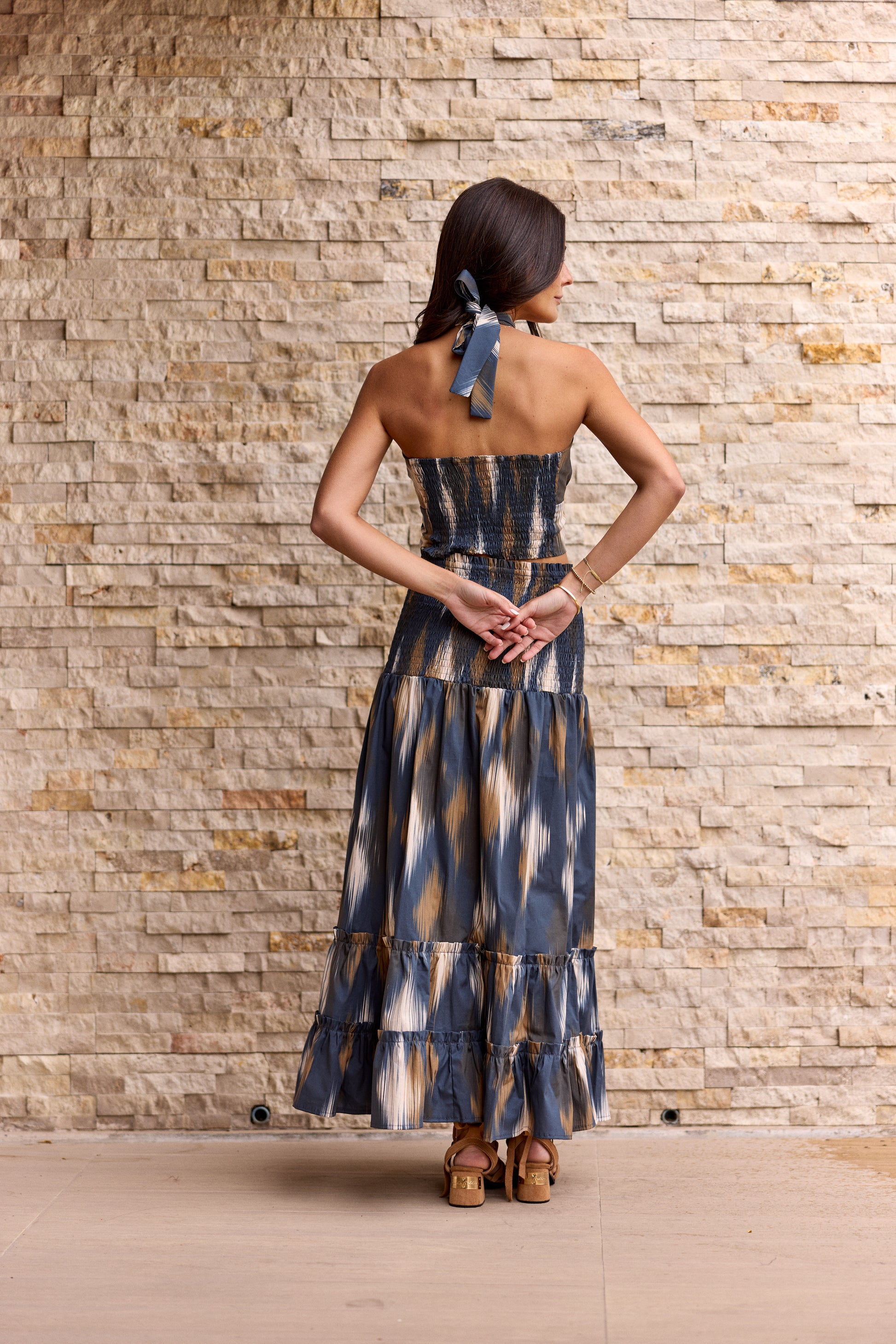 Ligero, cómodo y con un diseño que resalta la frescura del verano. Este top halter cuenta con un escote limpio y femenino, y una espalda completamente en panal de abeja (smock elástico), lo que permite un ajuste perfecto al cuerpo sin perder comodidad.