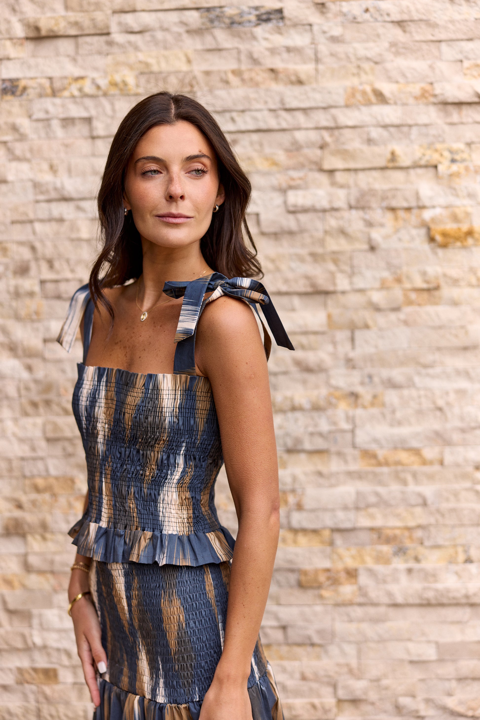Blusa Panal de Abeja con Amarras – Popelina de Algodón con Spandex